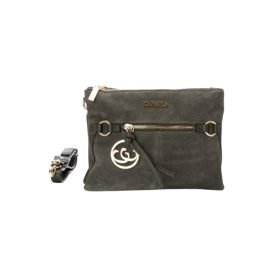 Carmela brand crossbody bag. Made of suede leather, it offers a natural and sophisticated style with a soft-touch finish. Its design includes a zipper closure, discreet metallic details, and an adjustable strap for added comfort. The interior is lined and features functional compartments. Perfect for a casual look with a timeless and elegant touch. Measurements: 23 x 27 x 8 cm.