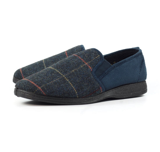 Indulge in cosy luxury with the Harrison II navy tweed slippers. The ultra-soft fleece lining keeps your feet warm, while the padded memory foam insole ensures all-day comfort. A sturdy and supportive sole makes them perfect for home wear.