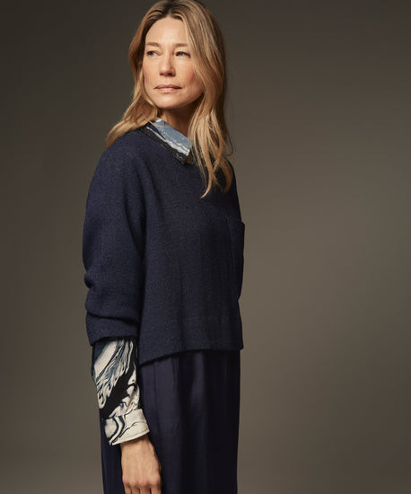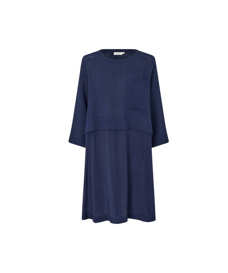 Create a stylish look with this dress with built-in layering effect. The top of the dress is made from timeless and elegant bouclé with a round neck, long sleeves and a decorative breast pocket, while the bottom is made from crisp cotton with an A-shape cut. Style the dress with a sparkling necklace or a patterned scarf.