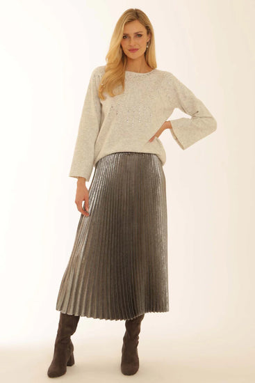 Add a classic flair to your wardrobe with this versatile pleated skirt. Created with a beautiful metallic finish throughout, this full-length skirt will make any occasion feel special. Add an elegant blouse and heels for a dinner date or team with a cosy knit and long boots for a fun shopping trip with the girlfriends.....